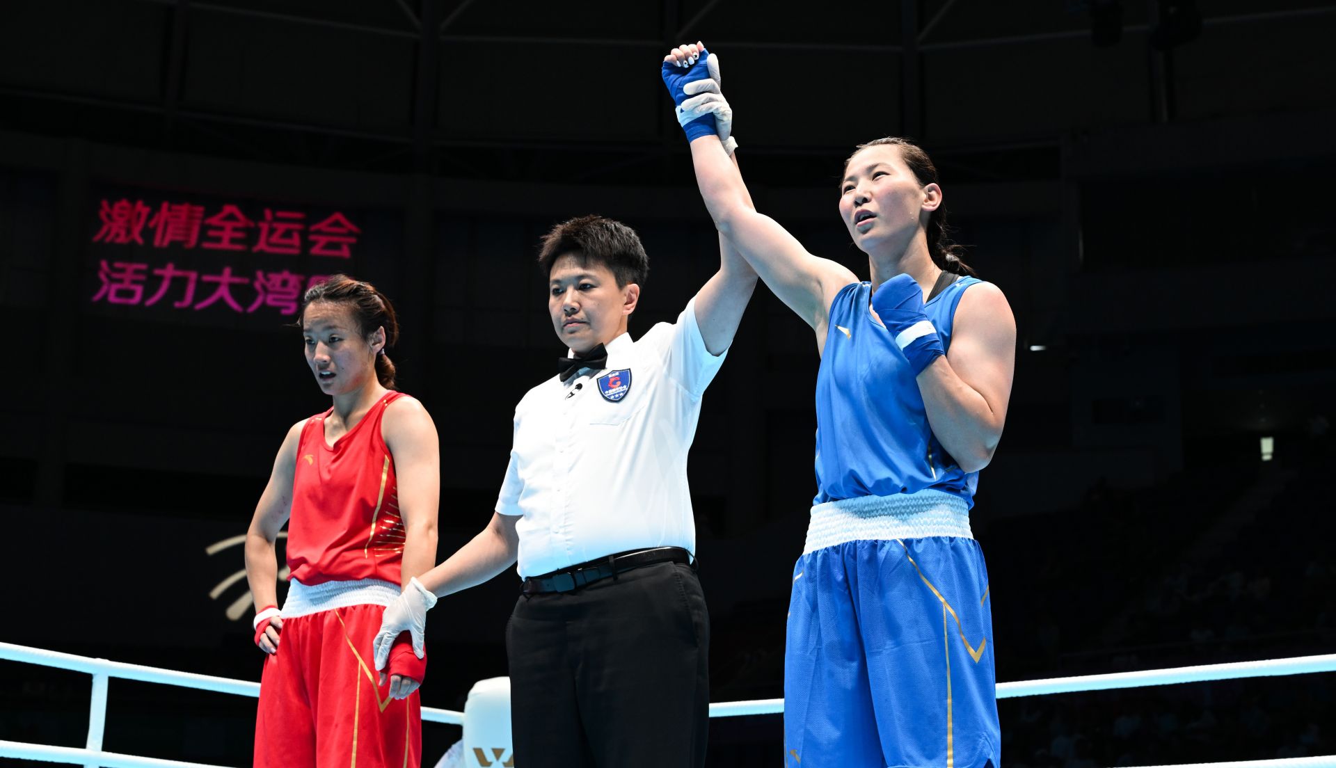 當(dāng)日,在廣東省深圳市舉行的第十五屆全國運(yùn)動(dòng)會(huì)拳擊女子60公斤級(jí)八分之一決賽中,海南隊(duì)選手劉欣悅戰(zhàn)勝甘肅隊(duì)選手王倩,晉級(jí)下一輪。