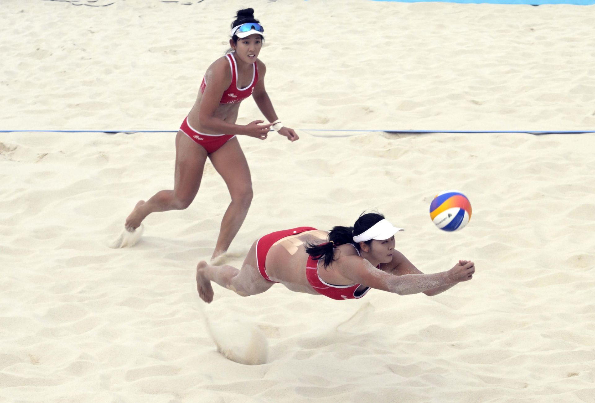 當日,在香港舉行的第十五屆全國運動會沙灘排球女子小組賽D組比賽中,浙江隊組合王凡/姚欣2比1戰(zhàn)勝重慶隊組合顏云肖/高月云。