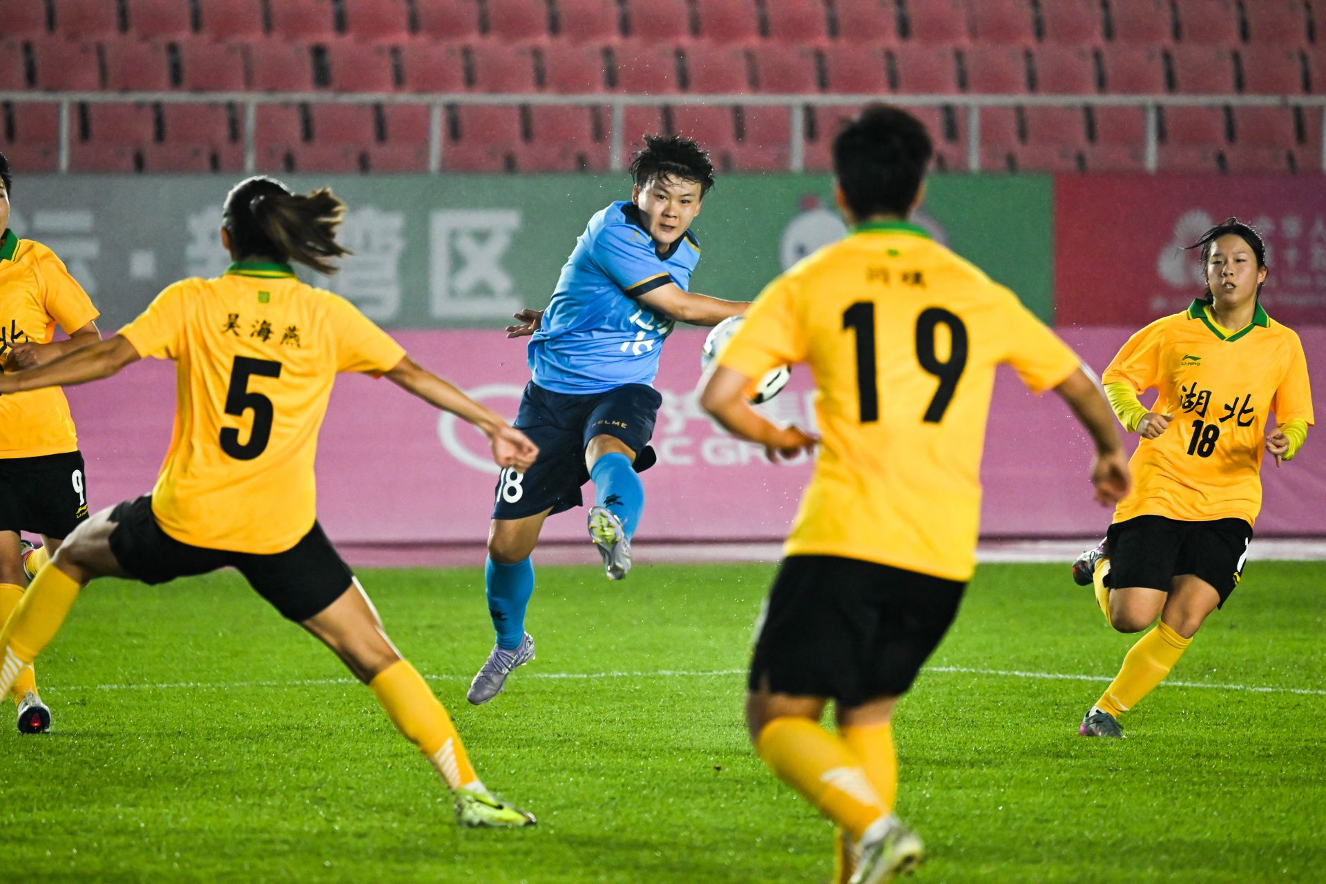 當(dāng)日,在廣東省佛山市舉行的第十五屆全國運動會足球女子成年組小組賽C組比賽中,江蘇隊2比1戰(zhàn)勝湖北隊。