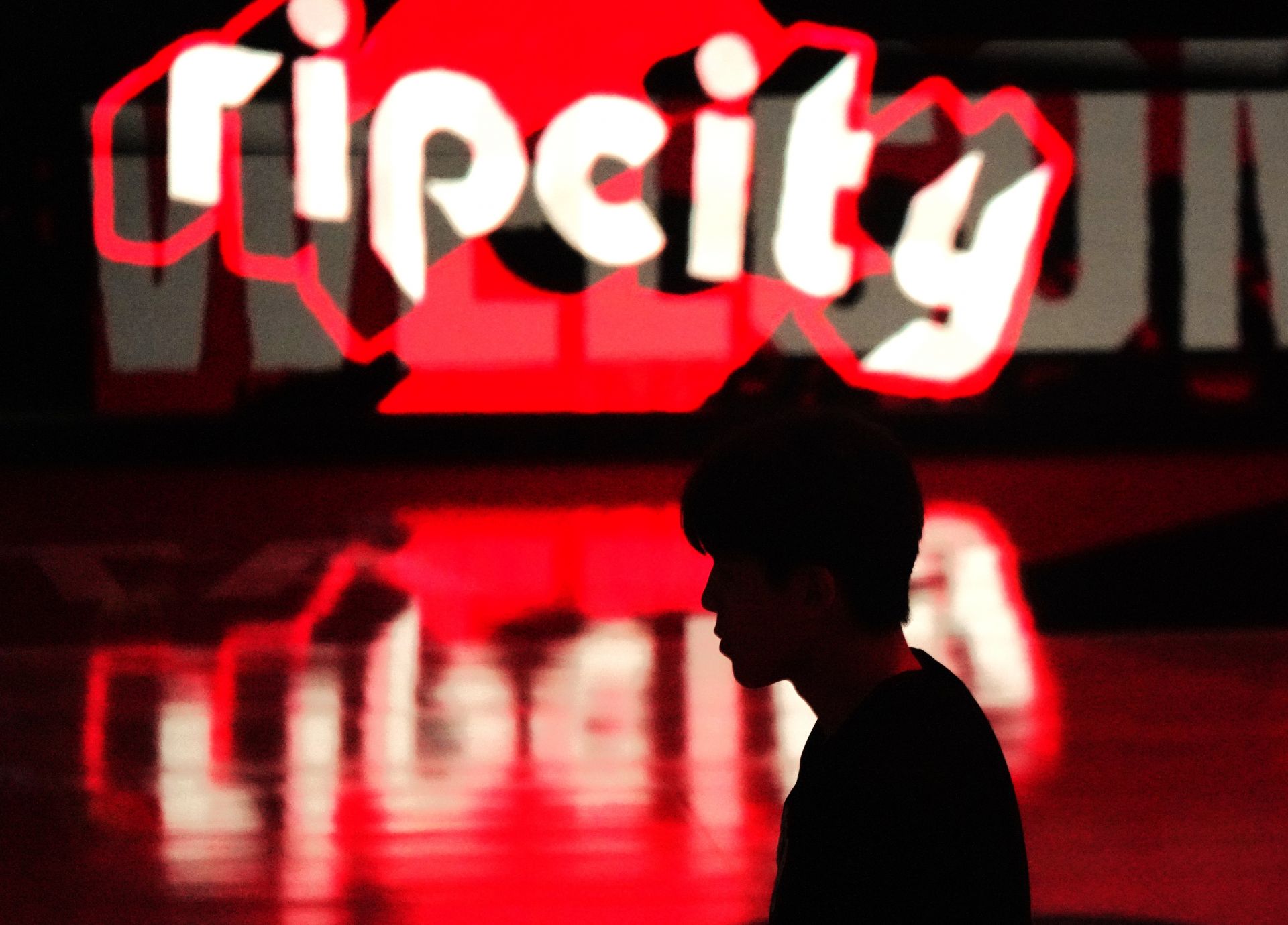 11月5日,開(kāi)拓者隊(duì)球員楊瀚森在比賽前。
