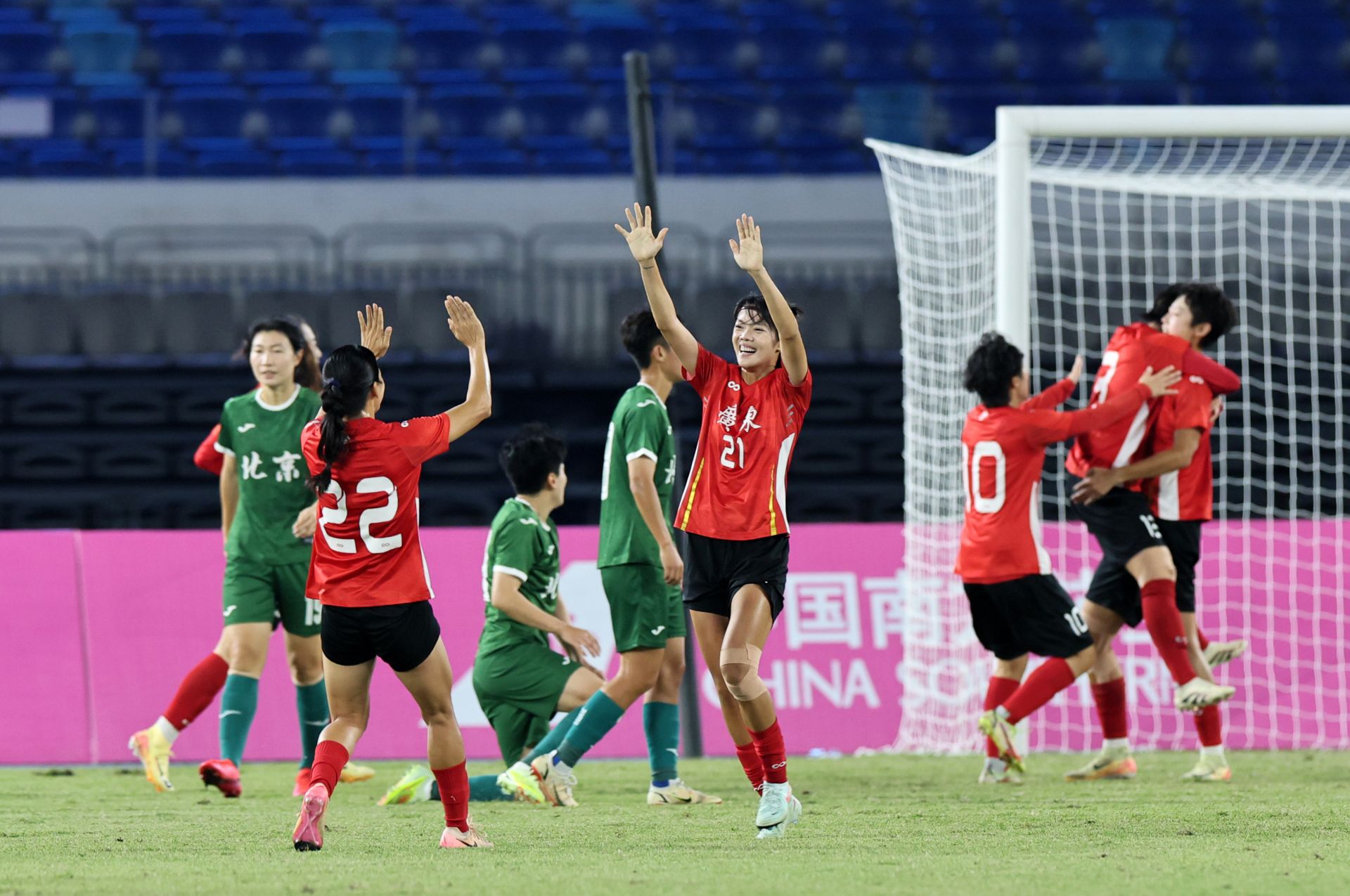 當(dāng)日,在廣東省佛山市舉行的第十五屆全國運(yùn)動會足球女子成年組A組小組賽中,廣東隊(duì)1比0戰(zhàn)勝北京隊(duì)。