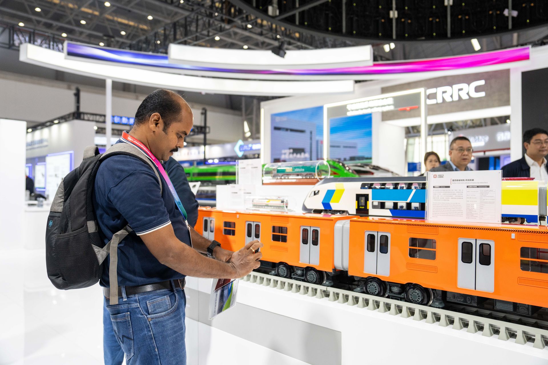 11月7日,觀眾在株洲國際會展中心拍攝國產(chǎn)列車模型。