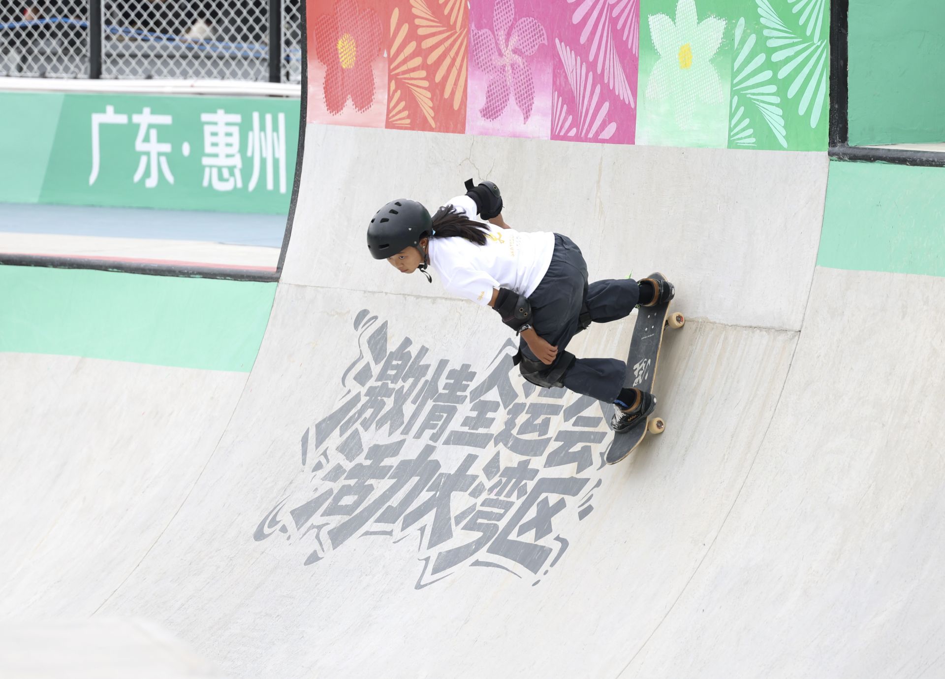 當(dāng)日,第十五屆全國運(yùn)動(dòng)會(huì)滑板項(xiàng)目女子碗池賽決賽在廣東惠州舉行。