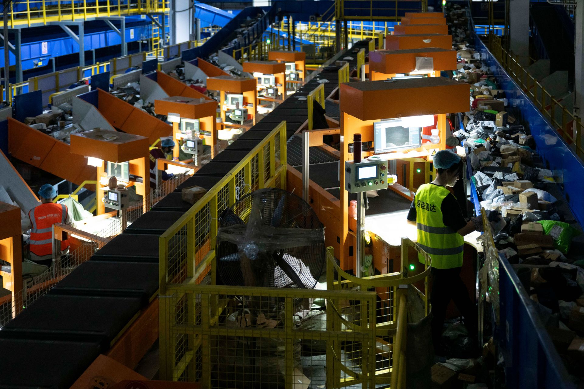 11月10日晚,在中國郵政集團(tuán)有限公司黑龍江省哈爾濱郵區(qū)中心,工作人員在分揀快遞。