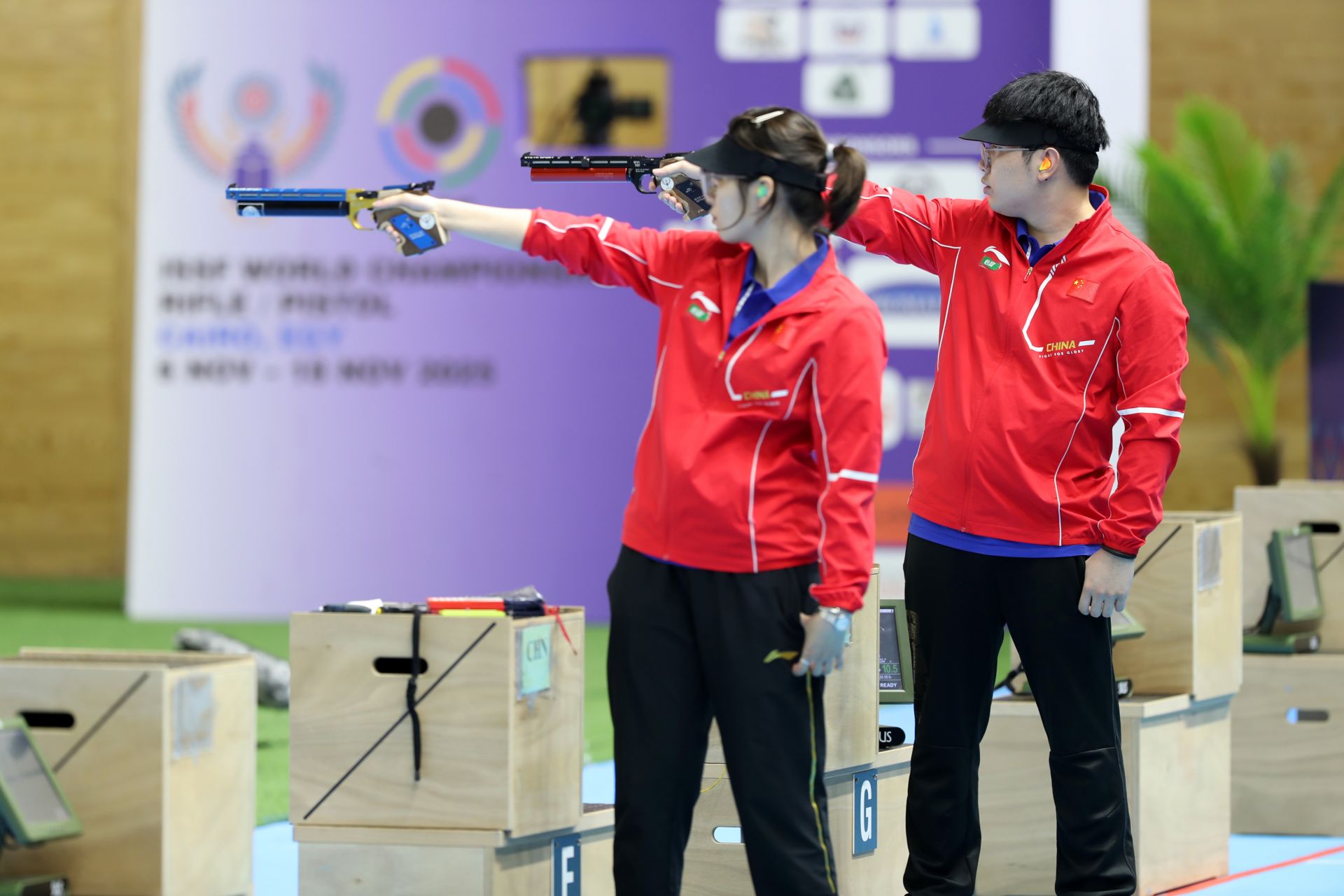當(dāng)日,在埃及開羅舉行的2025年國際射聯(lián)步手槍射擊世錦賽10米氣手槍混合團(tuán)體決賽中,中國組合姚千尋/胡凱獲得冠軍。