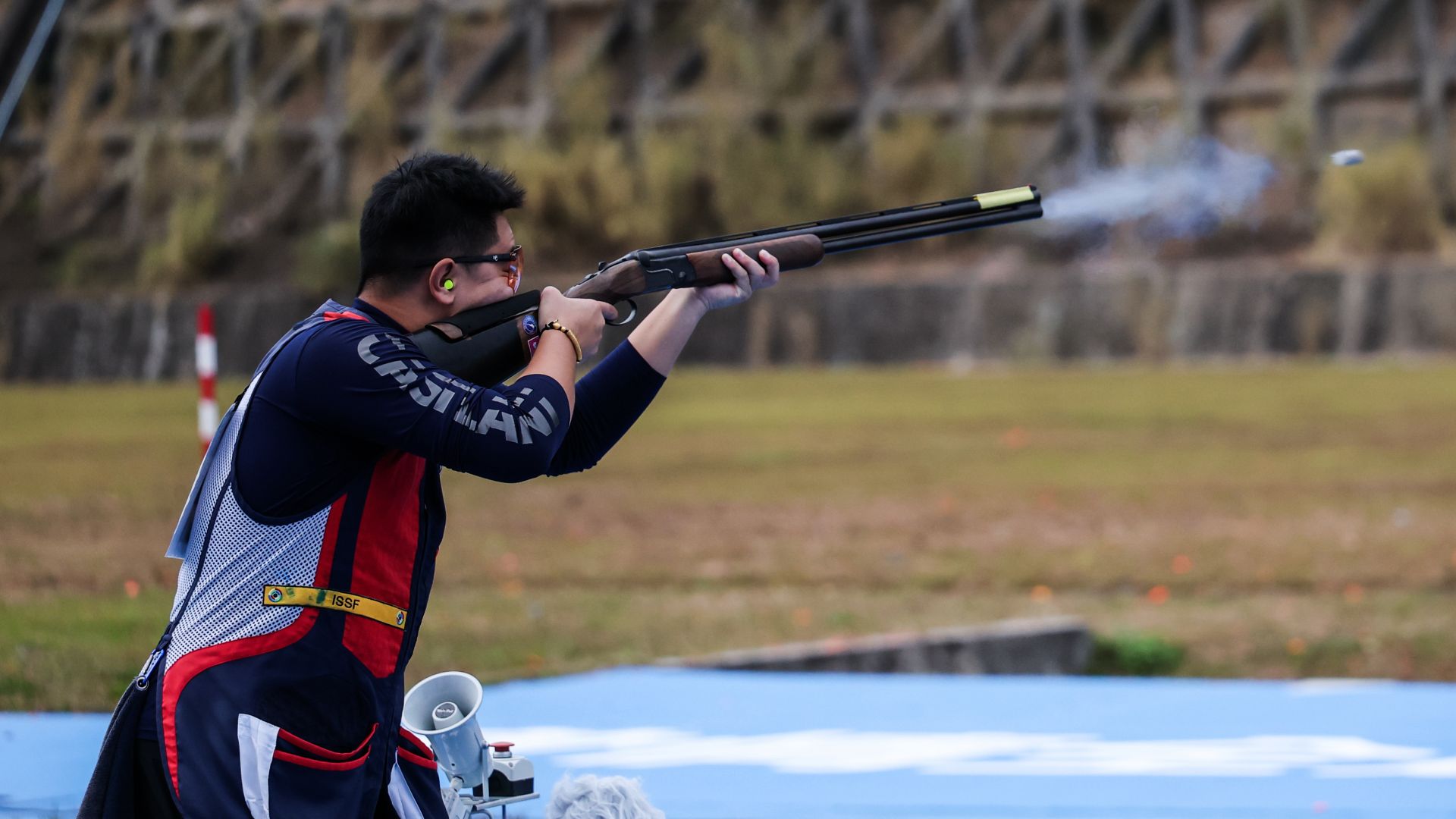 當(dāng)日,第十五屆全國運(yùn)動會射擊項(xiàng)目男子飛碟雙向決賽在廣州舉行。