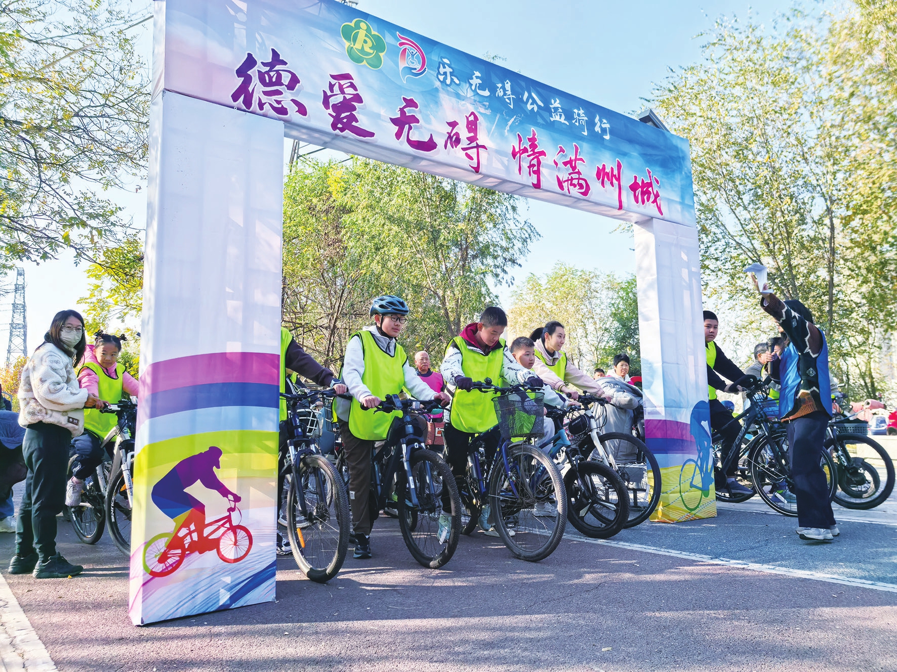 11月14日,“德愛無礙情滿州城”樂無礙公益騎行活動(dòng)在錦繡川風(fēng)景區(qū)舉行,吸引了110余名殘疾人及親屬、志愿者參與。本次活動(dòng)由市殘疾人聯(lián)合會(huì)主辦,德州市精神殘疾人及親友協(xié)會(huì)承辦,旨在豐富精神殘疾人及其親友的業(yè)余生活,助力他們更好地融入社會(huì)?;顒?dòng)分為大齡組和小齡組,騎行賽程分別為3公里和1.5公里,最終決出了冠、亞、季軍。 記者馬樂通訊員李娜攝