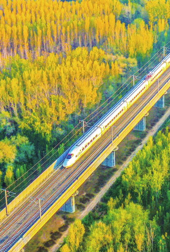 高鐵穿林,現(xiàn)代速度與自然之美交融